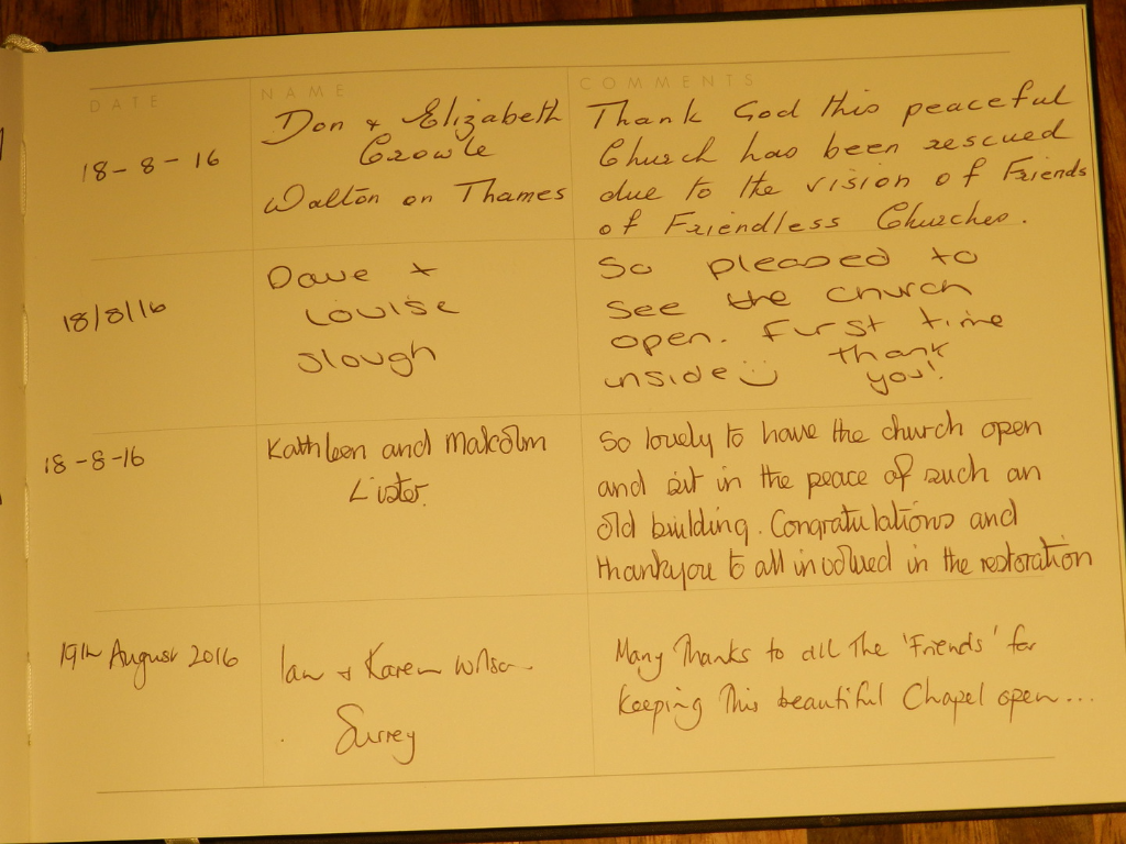 Above and below are the entries made in the Visitors Book from 17th July 2016.